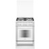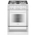 Газовая плита шириной 60 см окрашена эмалью белого цвета, панель управления и дверца выдвижного ящика декорированы стеклянными накладками. Установлен таймер со звуковым сигналом, все горелки рабочего стола и духовки оснащены электроподжигом (осуществляется нажатием кнопки) и газ-контролем.