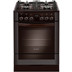 Коричневая плита шириной 60 см, с газовой варочной поверхностью и электрической духовкой. Классический дизайн и современное техническое оснащение дополнены стеклянным покрытием фасада и рабочей поверхности. Поворотные ручки управления декорированы накладками, на панели расположен сенсорный таймер. Рабочий стол с 4 конфорками (две стандартные, большая и экономичная) оснащен автоматическим электроподжигом и газ-контролем. Горелки защищены чугунными решетками.