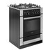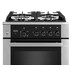 Полноразмерная газовая плита, основной цвет - черный, фасад дополнен стеклянными панелями и накладками из нержавеющей стали. Модель не оснащается крышкой, варочная поверхность из стекла, на широком основании расположены конфорки, они надежно защищены от повреждений фигурными чугунными решетками. Все горелки (в том числе и нижняя горелка духовки), оснащены газ-контролем, электроподжиг встроен в ручки управления. Для хранения кухонных принадлежностей предусмотрен выдвижной ящик.