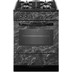 Полноразмерная комбинированная плита, в черном цвете, с нанесенной текстурой мрамора и стеклянными панелями на фасаде. Для удобства хранения посуды и противней предусмотрен выдвижной ящик в нижней части плиты.