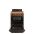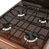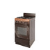 Коричневого цвета газовая плита с нанесенным рисунком на дверце, ширина 50 см. Модель комплектуется защитным щитком и эмалированными стальными решетками. В нижней части плиты расположен ящик для хранения посуды или противней, крышка ящика - откидывается. Для установки плиты на неровном полу предусмотрены регулировочные ножки.
