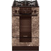 Газовая плита коричневого цвета, с нанесенным текстурным рисунком "мрамор", шириной 50 см, фасад и варочная поверхность - стеклянные. Оригинальный дизайн и хорошее техническое оснащение, все газовые горелки с электроподжигом, нижняя горелка с газ-контролем. На панели управления установлен механический таймер со звуковым сигналом. Четыре конфорки, расположенные на стеклянном рабочем столе, дополнены чугунными составными решетками. Духовой шкаф оснащен терморегулятором и грилем, есть вертел. Модель удобна в эксплуатации.