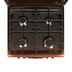 Стандартной компоновки комбинированная плита, в коричневом цвете, ширина 60 см. Эмалью покрыты фасад и рабочий стол, на панели управления присутствует таймер. Варочная поверхность с 4 газовыми конфорками надежно защищена чугунными решетками и металлической крышкой, газовые горелки с электроподжигом (включается нажатием кнопки). Духовой шкаф - электрический, классический термостатированный нагрев дополнен электрическим грилем и вертелом.